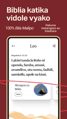Biblia Nje ya Mtandao ya YouVersion inakuletea uhuru kamili wa kufikia Neno la Mungu popote ulipo, hata bila muunganisho wa intaneti. Ikiwa umeundwa kuwa rafiki yako wa kiroho, programu hii nyepesi na ya haraka inahakikisha unaweza kuzama katika Maandiko Matakatifu bila vikwazo vyovyote. Furahia toleo la Biblia Habari Njema (BHN) lililo rahisi kusoma, na uache ujumbe wake ukuguse moyoni. Ya kipekee, programu hii ni bure kabisa, haina matangazo ya kuvuruga au ununuzi wa ndani ya programu, ikikupa uzoefu safi na usio na bughudha wa kujifunza Neno la Mungu. Pia, ina uwezo wa kusikiliza Maandiko kwa kutumia kipengele cha sauti, ingawa hii inahitaji muunganisho wa mtandao.