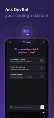 Ndani ya DevBytes, utapata sasisho za haraka kuhusu mienendo mipya ya programu, mifumo, miradi maarufu ya GitHub, na mafanikio ya akili bandia (AI) — yote yakikujia kwa urahisi. Zaidi ya hayo, kuna uchambuzi wa kina unaokuwezesha kufikiri kama msanidi mzoefu, ukigusia mifumo ya usanifu na uwezo wa kupanuka. Hakuna kusoma tu; DevBytes inatoa mafunzo na maonyesho ya vitendo unayoweza kuyafuata hatua kwa hatua, yakikuruhusu kujifunza kwa kufanya. Pia, changamoto za kusimbua huimarisha ubongo wako na kukupa suluhisho za hatua kwa hatua kwa matatizo halisi, bila kuhitaji kukariri. Usisahau DevBot, msaidizi wako wa akili bandia anayefafanua nambari, anarekebisha makosa, na kuboresha tija yako, akikupa msaada uliofahamika kama msaidizi wa kibinafsi.