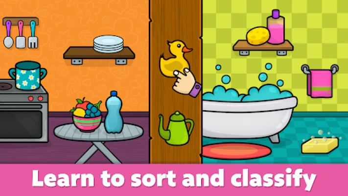 Gundua mazingira yasiyo na matangazo, salama kabisa kwa watoto wenye umri wa miaka 2, 3, 4, na 5. Bimi Boo huleta mada 30 za maisha halisi, kutoka shughuli za kuvaa hadi kupika, zikiwafundisha watoto ujuzi wa kijamii na vitendo. Watoto watajifunza kupanga vitu kulingana na ukubwa, wingi, umbo na rangi, sambamba na kuboresha utambuzi wa maumbo na rangi kupitia mbinu za kipekee za kuendana. Programu inakuza umakini, mantiki, na uwezo wa kukumbuka kupitia michoro yake ya kupendeza na sauti za kuvutia, huku pia ikitoa michezo mitatu ya kuanzia bila malipo.
