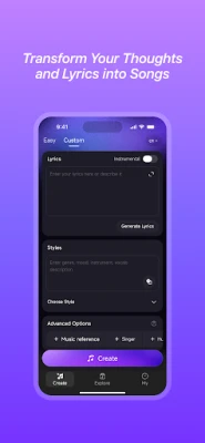 Fungua ulimwengu wa ubunifu wa muziki ukitumia Mureka, jenereta yako mahiri ya nyimbo za AI. Imepangiliwa kwa urahisi wa kutumia, Mureka inakuwezesha kuunda mashairi kamili na melodi zenye kuvutia, hata bila ujuzi wa kinadharia wa muziki. Kila mtu anaweza sasa kuwa mtunzi wa nyimbo, akibuni miziki inayogusa hisia na kutoa sauti ya kipekee. Anza safari yako ya muziki ambapo mawazo yako yote yanageuka kuwa uhalisia wa kusikika.