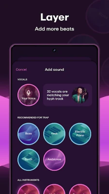 Unda muziki ukitumia sauti zaidi ya milioni 11 za wanamuziki duniani kote. Telezesha kidole kati ya midundo, ala na aina za muziki ili kuunda wimbo wako. Anza na sauti ya msanii au rekodi wazo lako, jenga hatua kwa hatua, kisha shiriki papo hapo au toa katika ubora wa kitaalamu.
